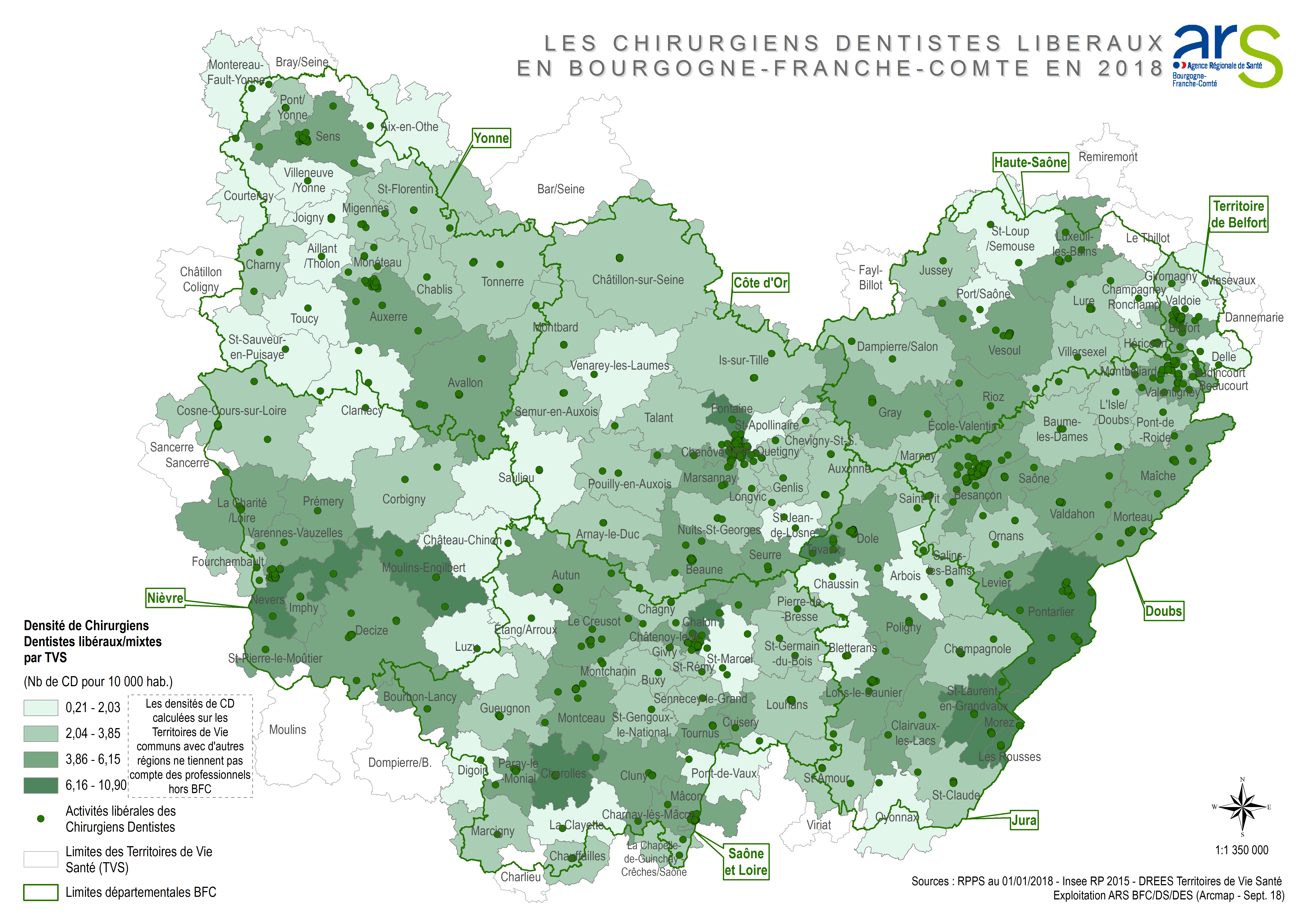 Les chirurgiens dentistes libéraux en Bourgogne-Franche-Comté en 2018 Mise à...